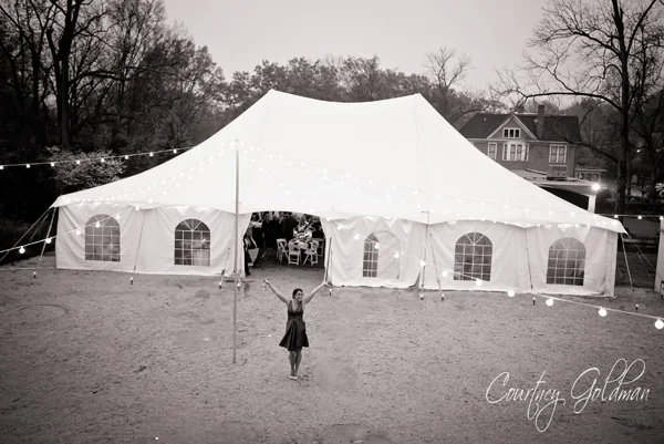 Some more great moments from Nicole and Tyler's wedding.Getting ready to be announced. I love how happy they both are. And Nicole looks so cute with her dress held up so we can see those fabulous shoes!The first danceFather DaughterMother SonThe rain doesn't bother me!!The beautiful and delicious cake by Trumps Catering. Their baker Susan Hodges makes the perfect wedding cake - both phenomenally beautiful, and absolutely mouth-watering. This one was white cake with strawberry filling - or at least the layer I had a piece from was!There was a brief power outage within the tent, so I got this shot of the Japanese lantern and the rain outside the tent. One more post from this wedding to come... the dancing!